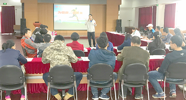 研讨会伊始,郭淑范教授指出,如今跑步作为普及面最广的运动健身项目,受到各类人群的青睐,有助于促进教师的身心健康。随后,郭龙峰老师从跑步的分类、自身素质判断、跑步时的能源物质消耗、跑步的运动技术和呼吸技术、运动强度、运动时间、跑步装备和跑步误区等方面给在座教师深入分析讲解了什么是“科学跑步”。同时,他还以明星运动员的比赛视频给在座教师形象细致地分析了长短跑的动作技术要领,让大家对正确的跑步姿势有了更为直观的认识与理解。最后,刘洋老师也以自己参加“马拉松”比赛的亲身经历,向在座教师传授了如何通过营养膳食的合理安排,让自己快速从高强度长跑疲劳中恢复过来。